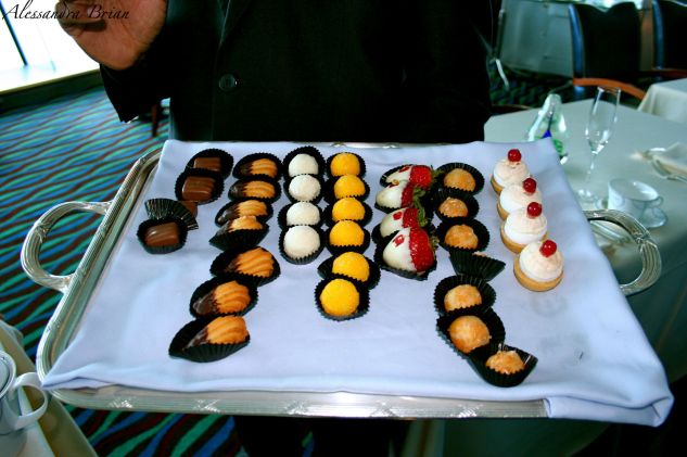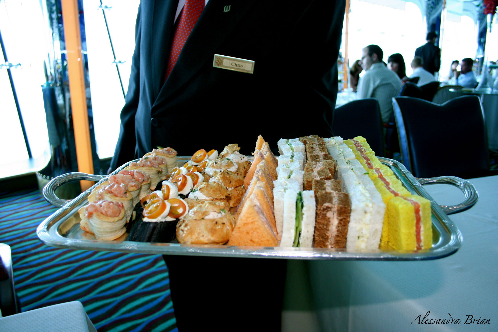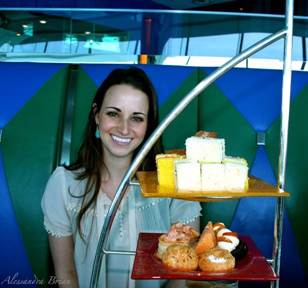 It began with a miniature Beef Wellington, what an incredible beginning. Two bites of the best Beef Wellington i’ve ever tasted. Then we were served Vegetable Samosas with a spicy dipping sauce. Then came the Sky Tea. A massive, sail shaped stand was placed before us, and my little foodie heart skipped a beat. On the bottom plate, a selection of pastries, second, a fruit cake, carrot cake, biscuits, and shot glass of creme brûlée, third, a selection of savoury pastries and breads with delectable fillings, and on top, delicate tea sandwiches each on a different flavoured bread. The spread and presentation were amazing and we happily munched for hours. Nearing the end of our tower conquering, a waiter appeared with a platter of all the sandwiches we had just devoured. We naughtily took seconds of our favourites, feeling a bit like bears storing up for winter. As our stomachs neared their bursting point, we decided to stop and save room for the scones. The scones! Warm, freshly baked scones with the most gorgeous spreads i’ve ever been served to accompany this after tea treat. Strawberry mousse, clotted cream, passionfruit jam, and strawberry jam with rose petals, each more delicious than the last. We sat back, sipping our tea, gazing out at the silky blue water, completely content. And then he appeared, again. The sight of the silver platter of tiny treats was almost overwhelming. Being the greedy little monster that I am, I took a strawberry, dipped in chocolate with a gold flake garnish, and decided that it was the last bite of food I would consume for the rest of my life. Or at least, until dinner.
