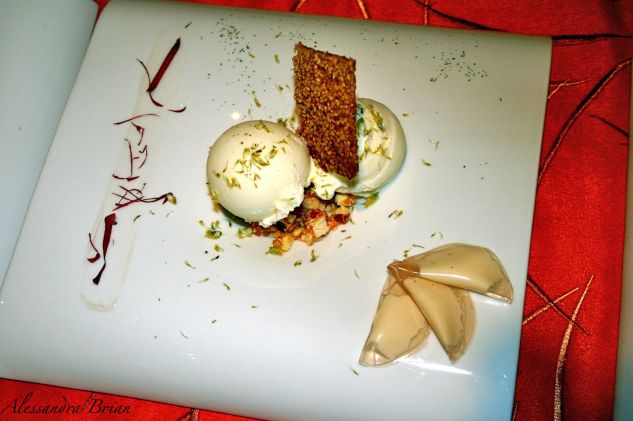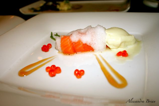– Home Smoked Salmon enhanced with Soy-apricot Sauce and Wasabi Ice Cream