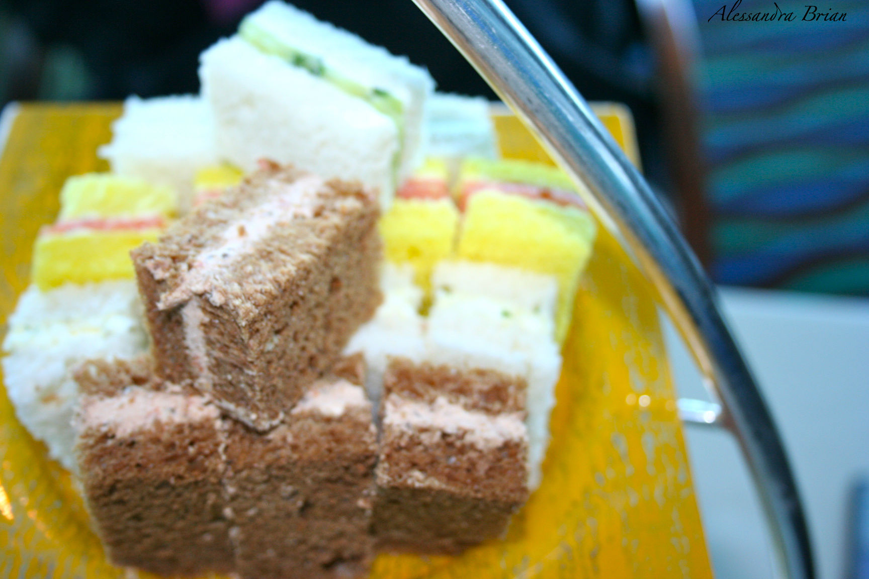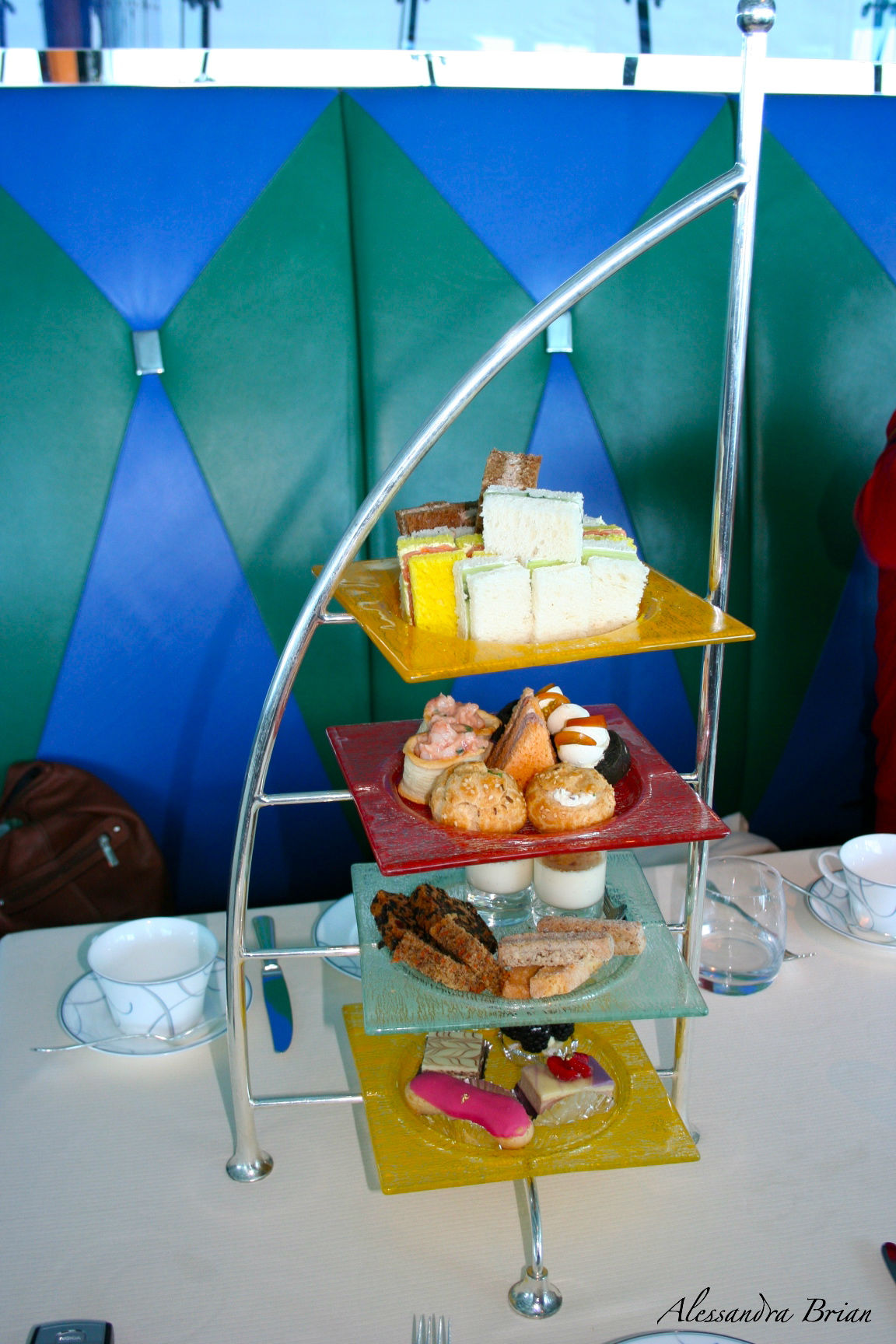 Aside from the navy and forest green, cruise ship like interior, the views from the Sky Bar were unlike any other. We were seated in the middle of the dining room at a booth facing outwards towards miles of crystal clear ocean. On either side, all of Dubai was visible. We chatted away listening to the beautiful pianist playing Disney songs on her glass, grand piano. We then began our Sky Tea, and I think it would only be fitting for me to describe this as the world’s best afternoon tea.