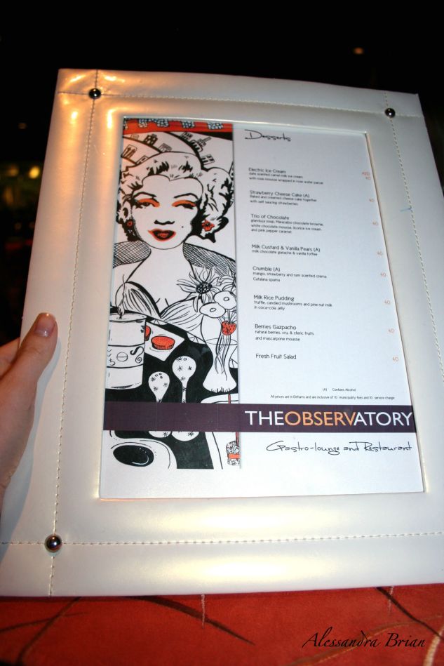 As darkness fell, we headed home to get ready for our dinner reservations at The Observatory. The Observatory is located on the 52nd floor of the Marriott Hotel and offers incredible views of the palm and downtown Dubai. It has low-lighting and a modern interior, but we weren’t there for the interior design. I must say I admired the innovation of the chef, but not everything was to my liking. Overall, we enjoyed our meal with our well-lit view of downtown Dubai.