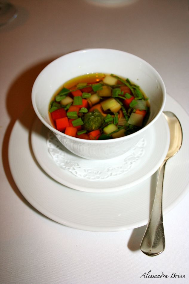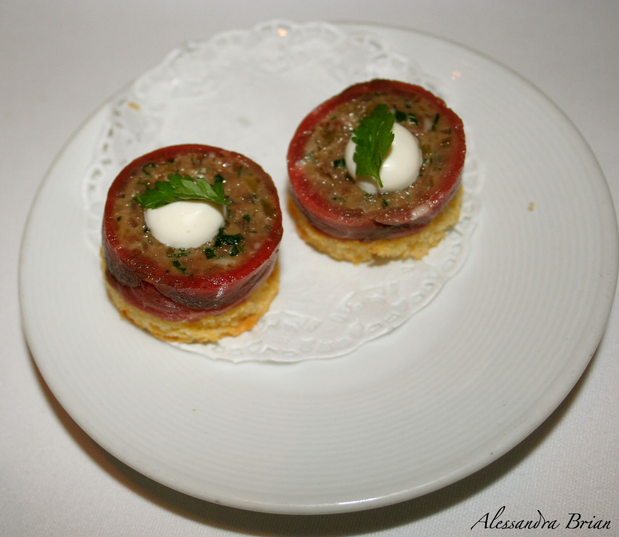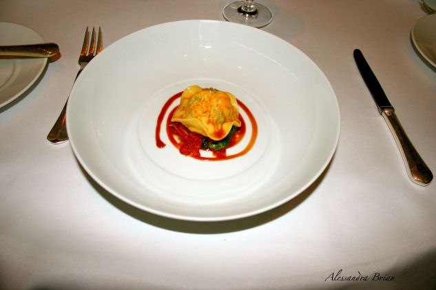 – Ravioli of Scottish Lobster and Salmon, with Tomato Chutney Glazed Lettuce, and Lobster Vinaigrette
