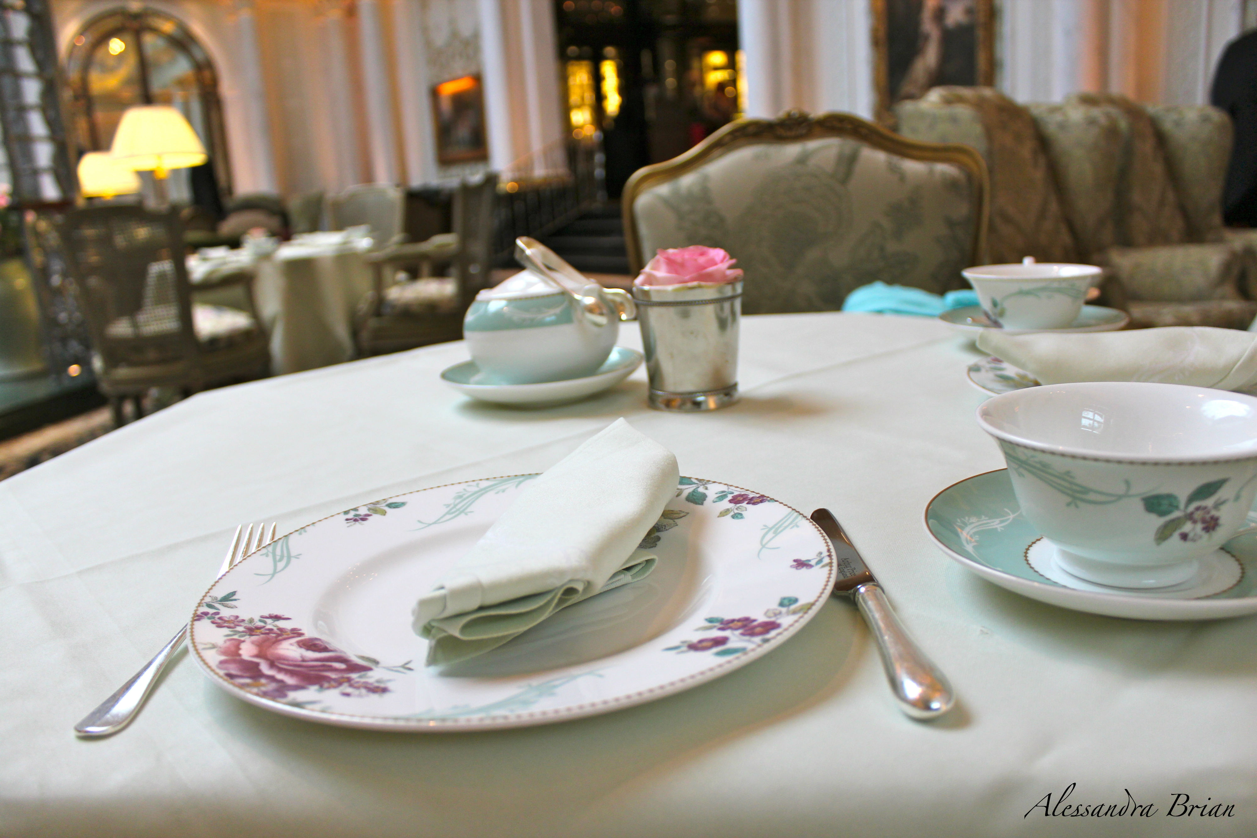 We were seated in the perfect location. Our backs were to the wall, and we had the perfect view of not only the entire room itself, but anyone entering the foyer. We selected our tea, had a particularly awkward photo taken, then set about commenting on the potential life stories of surrounding guests and of course, the outfits they were wearing.