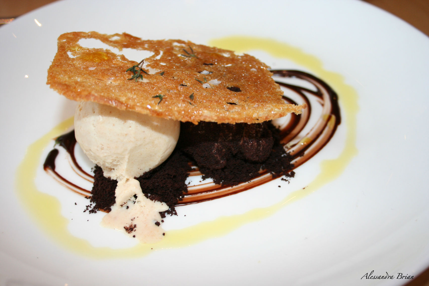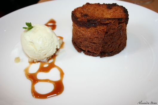 Chocolate Mousse with Caramelised Bread, Olive Oil, and Brioche Ice Cream