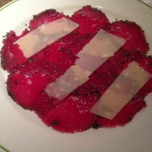 During the week, I had the lovely opportunity to dine in the Italian Room at Novikov. The room is massive and airy with a modern, Tuscan decor. We had a lovely three course meal of Beef Carpaccio, Flat Stone Roast Chicken with Rosemary Roast Potatoes, and a delicious Tiramisu.