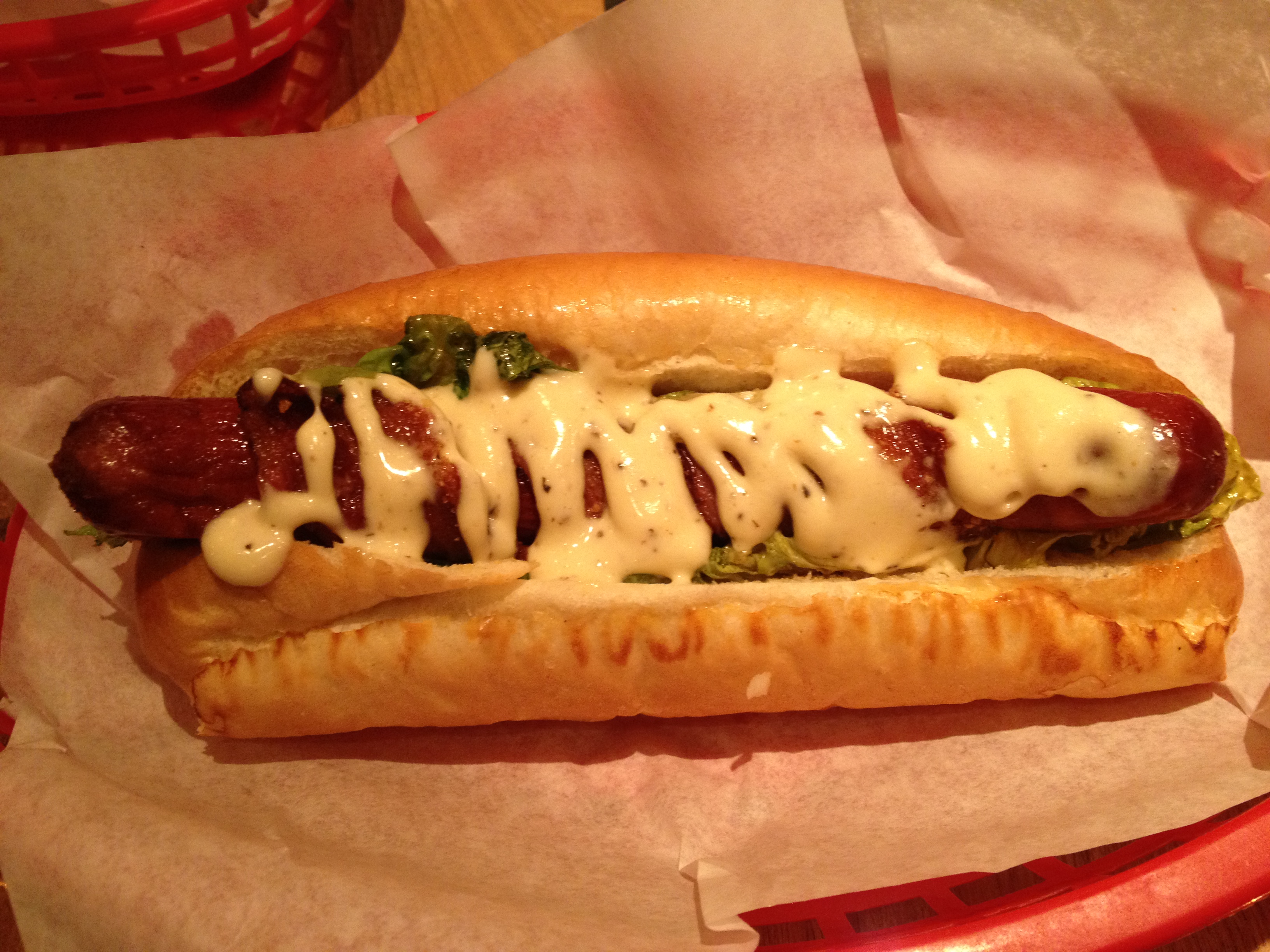 The best part of going to Bubbledogs with friends is the sampling opportunities. I also tried the BLT: bacon wrapped with caramelized lettuce and truffle mayo, Fourth of July: bacon wrapped with smokey BBQ sauce and coleslaw, New Yorker: grilled sauerkraut and NY street cart onions, Buffalo Dog: deep fried hot dog with spicy buffalo sauce, blue cheese, pickled celery and celery seeds, and Horny Dog: corn dog with corny bits. All of these were absolutely delicious and true to their name.