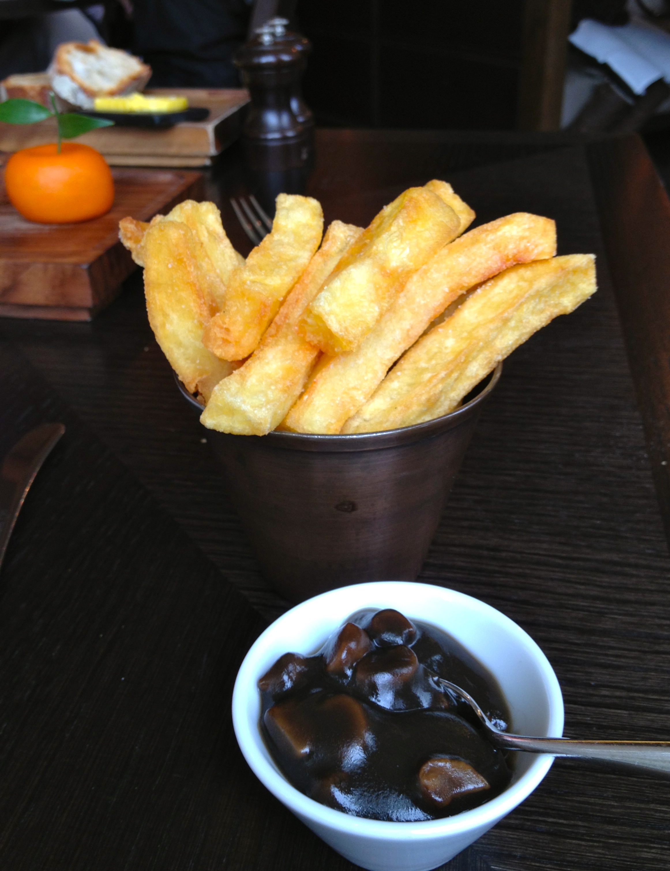 She was incredibly knowledgeable and clearly passionate as she took us through the menu, a small detail that really adds to the experience. We debated over dishes and asked countless questions, trying to decide how to narrow down our choices. We eventually decided on the three things we’ve heard most about: Meat Fruit, Triple Cooked Chips and Tipsy Cake.