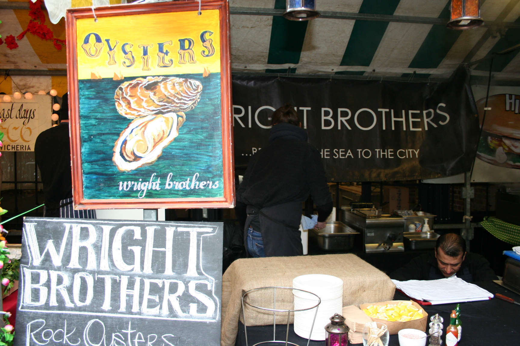 The Wright Brothers were there shucking big, meaty oysters, but it was far to cold to slither one of these down.