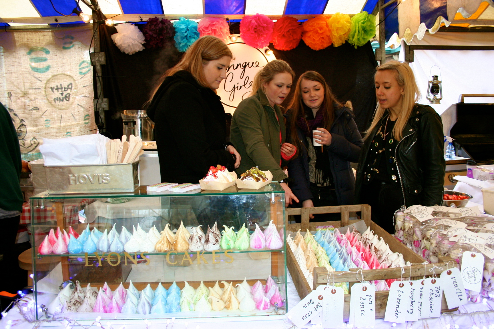 We stopped by the lovely Meringue Girls stall to purchase some parting gifts. The colourful meringues temptingly line a crate on display.