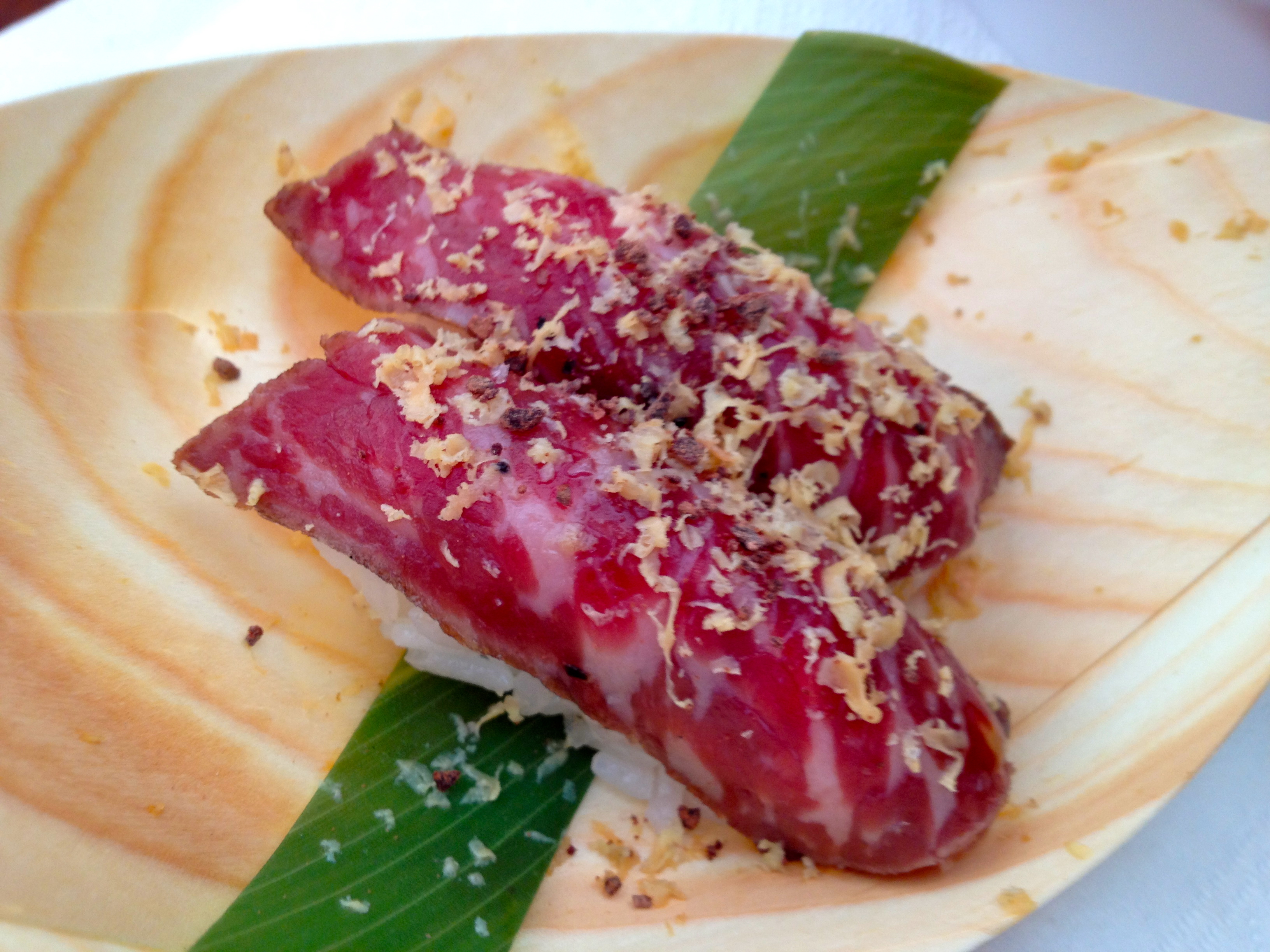 We plumped for the Wagyu Nigiri ponzu with foie gras and shavings of Peruvian chocolate.