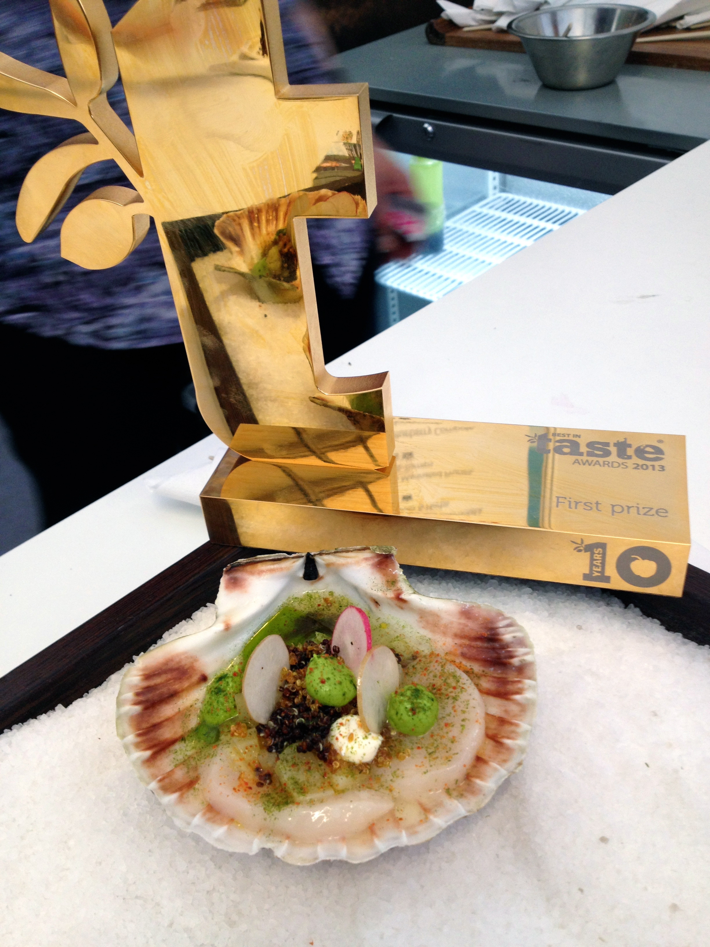 I then found L’autre Pied, and on display next to a stunning shell filled with ceviche of hand dived scallops with black quinoa, creme fraiche, radishes, fennel & dill was a shiny gold trophy.