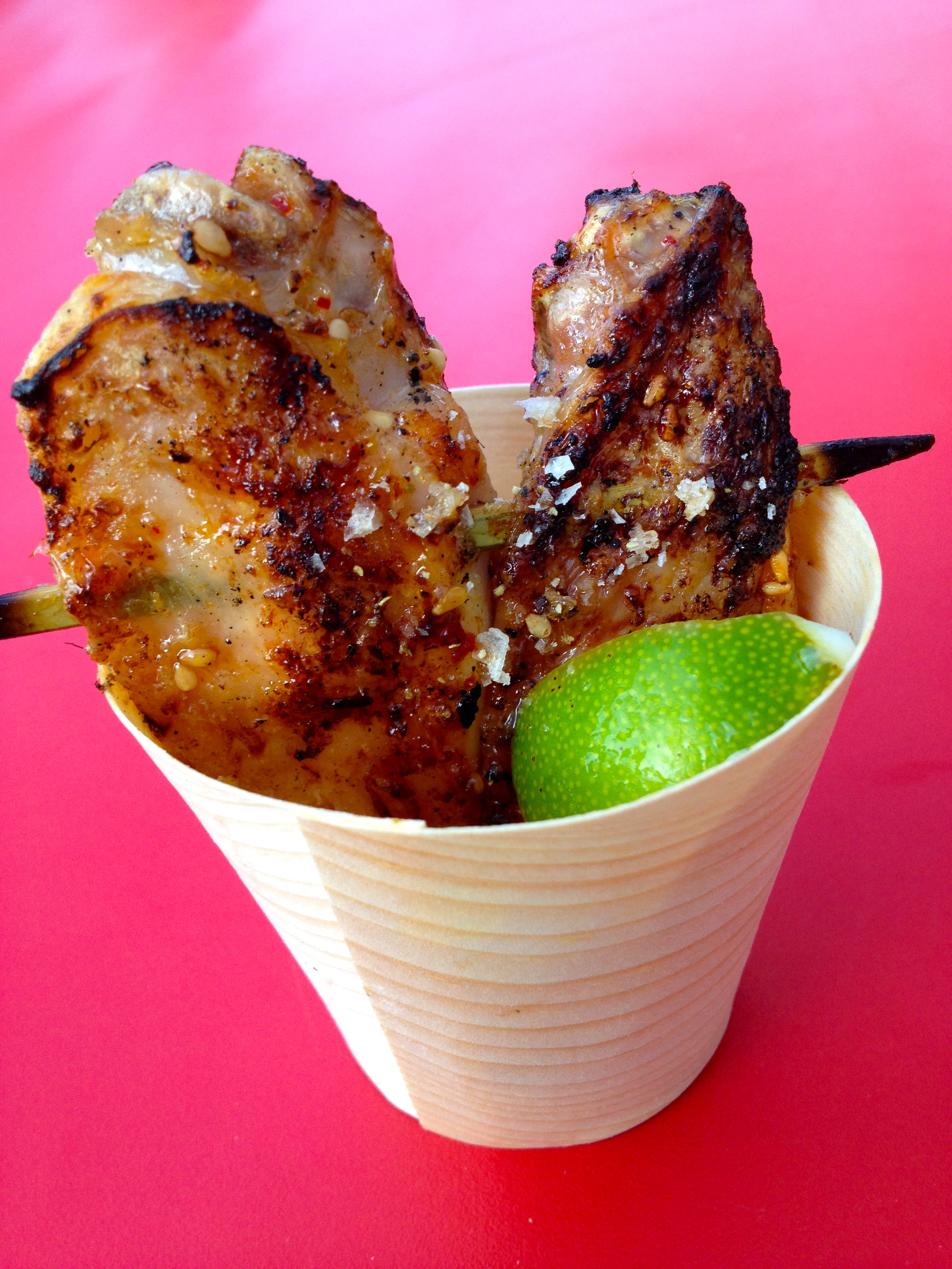 Roka had a BBQ grill set up grilling lamb chops and chicken wings at a manic pace with a growing line surrounding the smoke filled tent.
