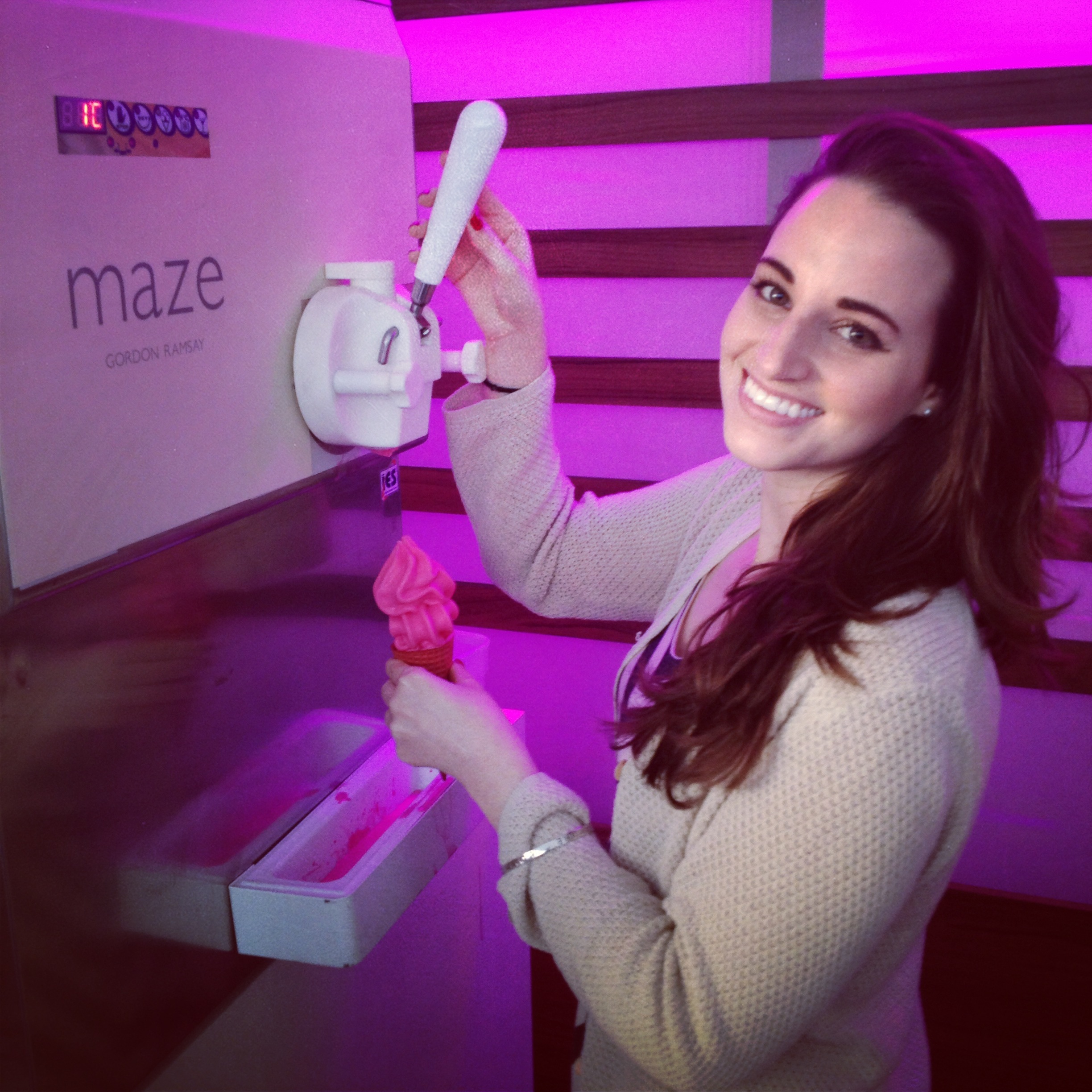 Gordon Ramsey’s Maze not only has a custom ice cream machine, it pumps out creamy red velvet ice cream!