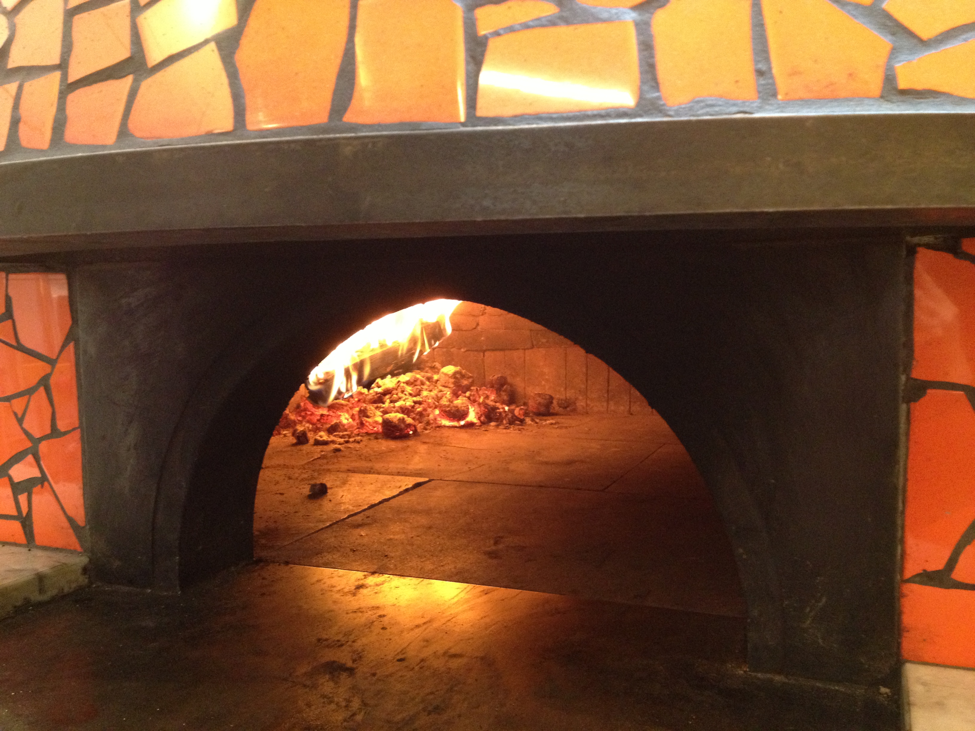 The family owned restaurant has been recently renovated, with its walls being taken back to their original red brick shell dating back to when the building was originally built. The combination of modern and rustic interior design creates a welcoming atmosphere with Italian roots present throughout. At the heart of the restaurant is a handmade, wood burning oven decorated in brightly coloured orange tiles. This guards the open plan kitchen adding to the authentic pizzeria feel.