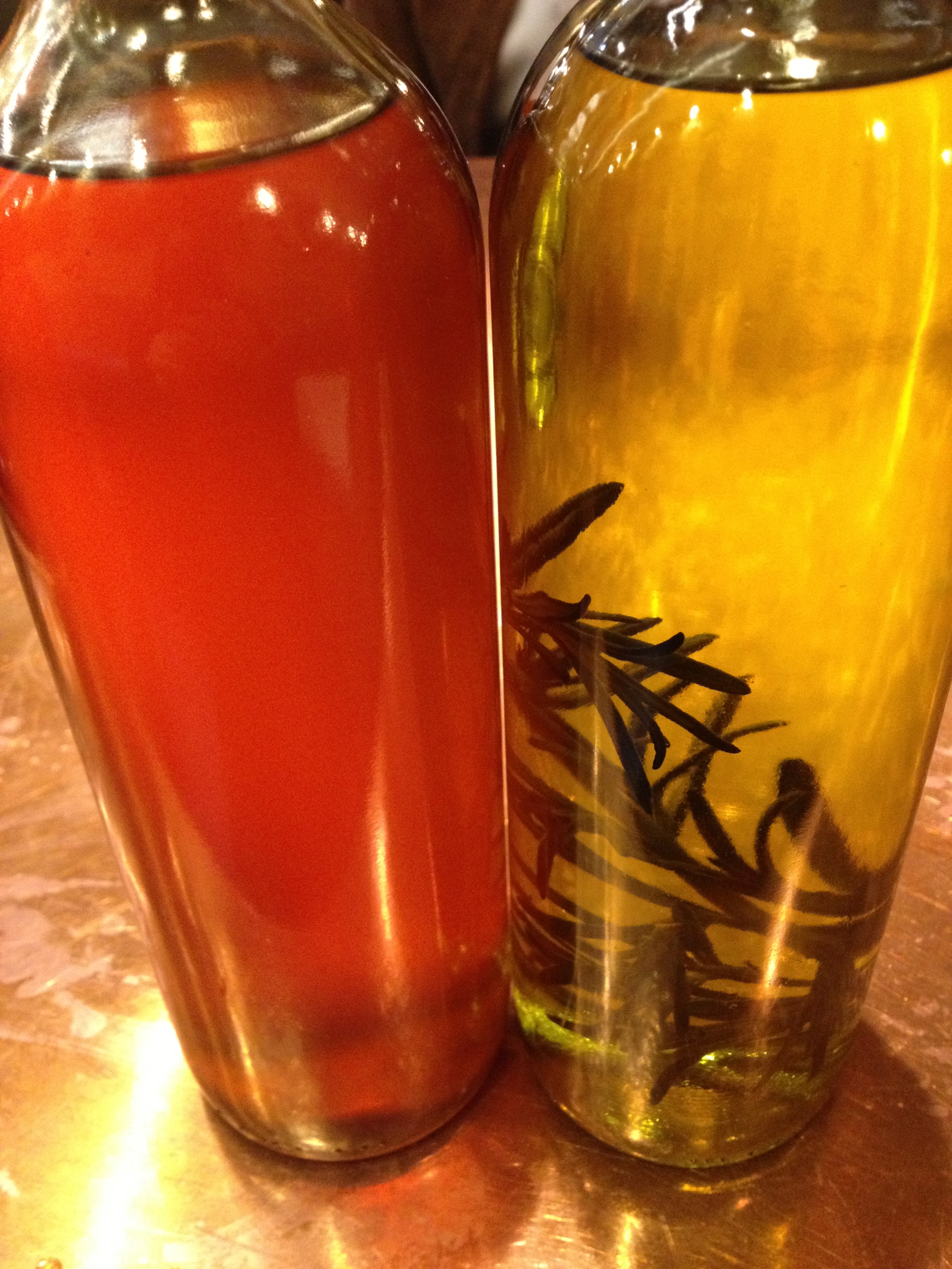Homemade rosemary and chilli oils top each table to allow a custom made burst of flavour to be added by each diner.