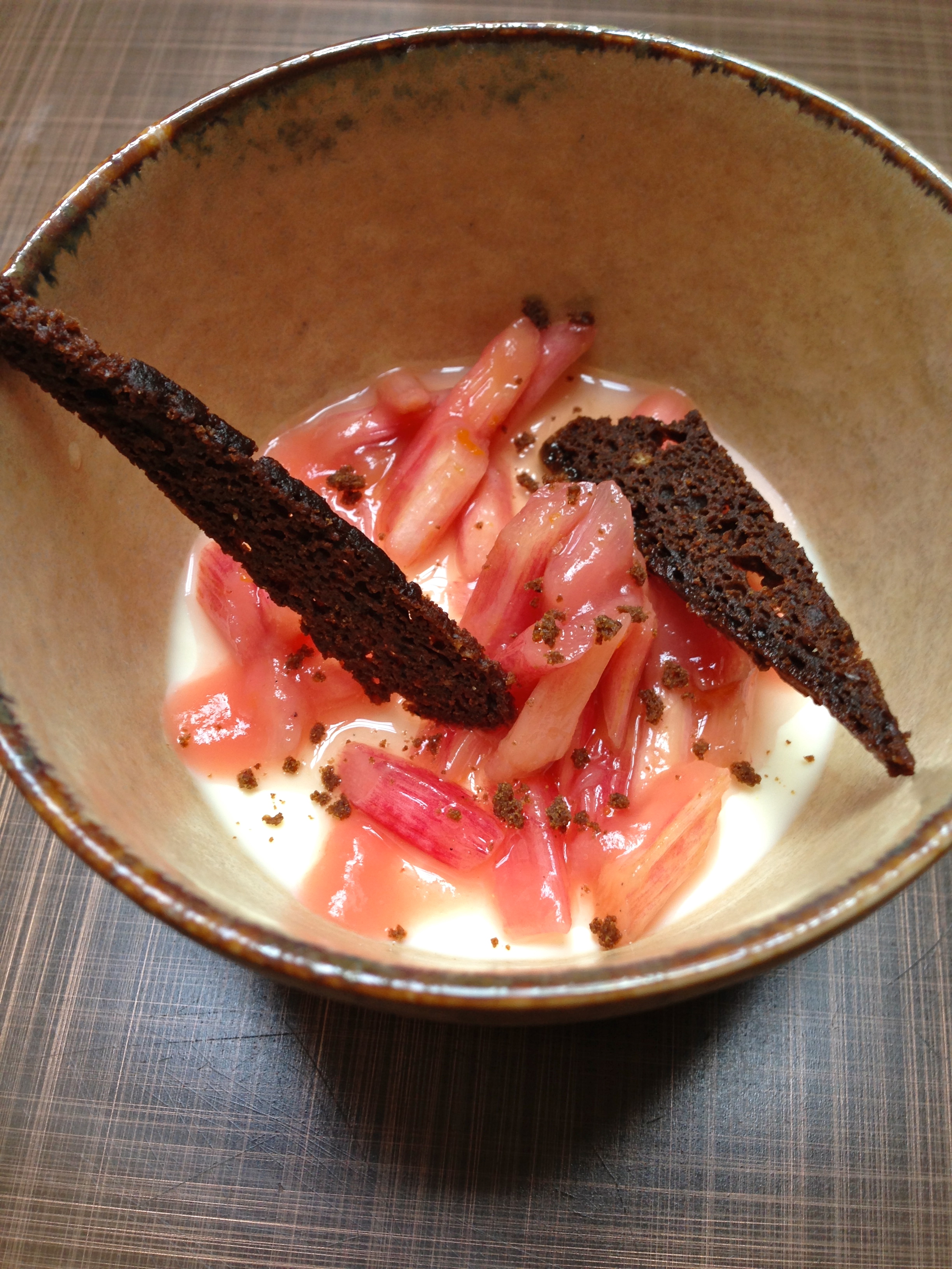 Vanilla panna cotta, Champagne rhubarb, gingerbread