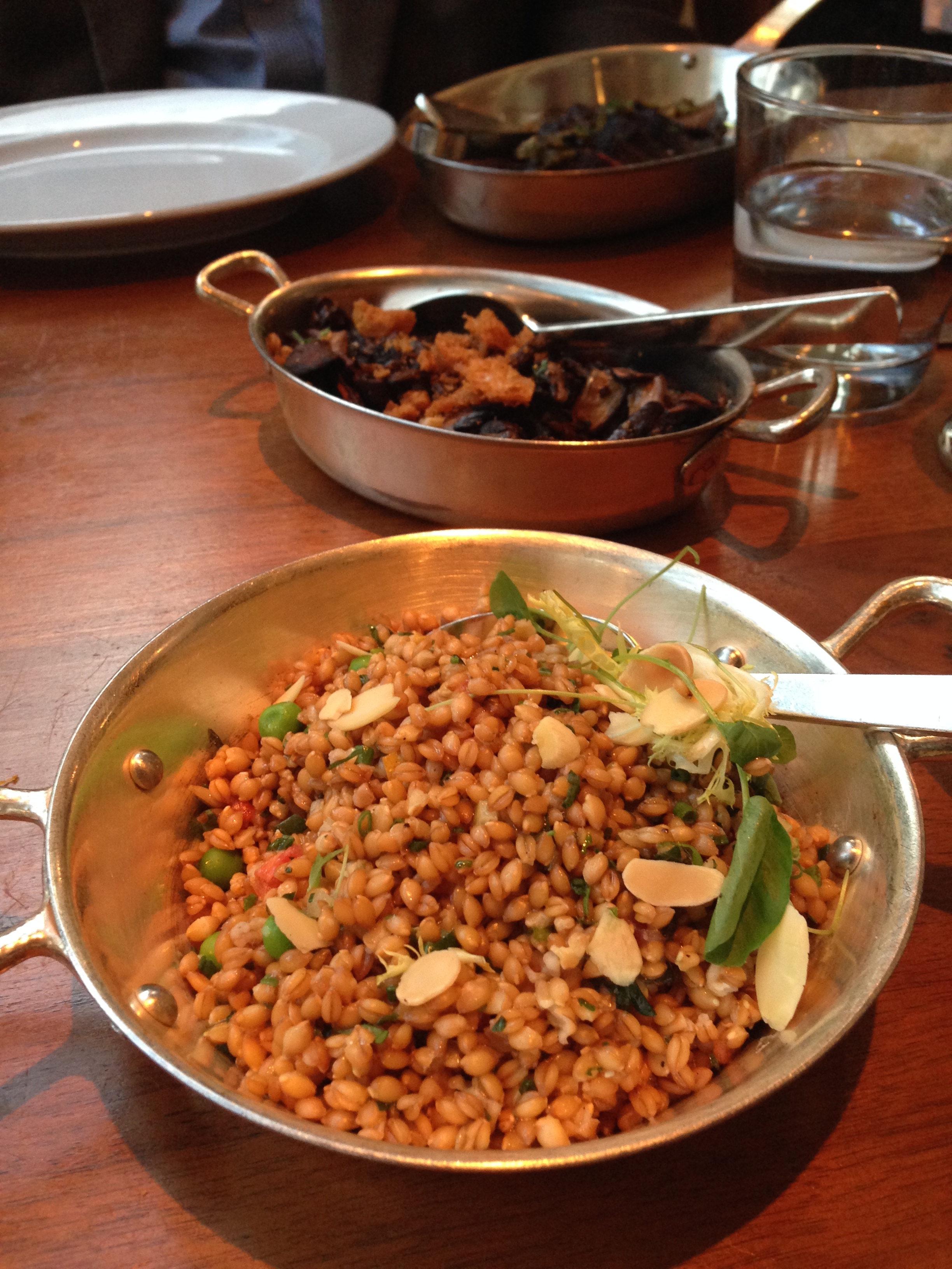 We also shared sides of toasted faro with peas, almond and preserved lemon, roasted woodland mushrooms with olive oil croutons and beans with pickled blackberries.