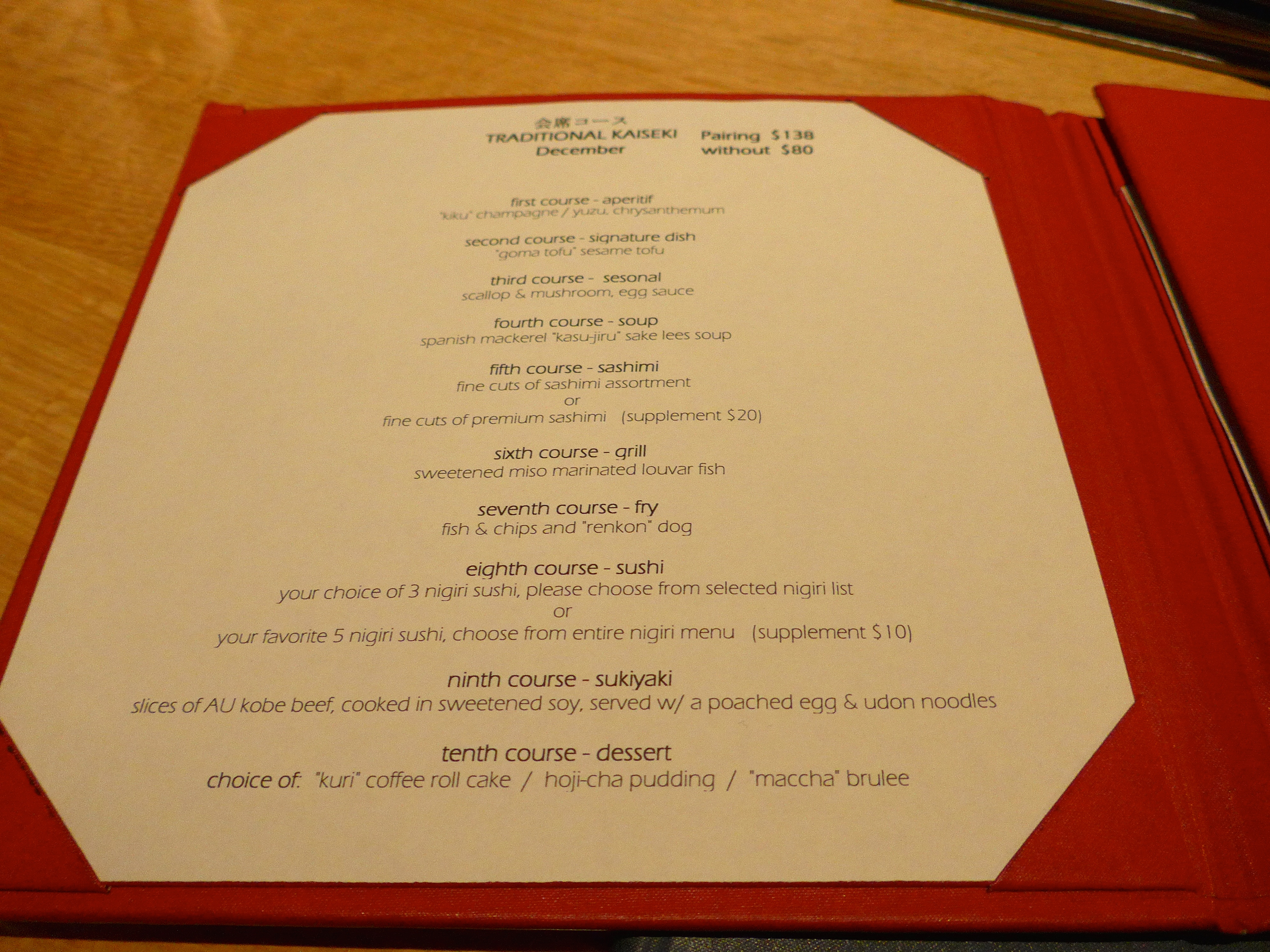 Fish & chips and ‘renkon’ dog was the only course I didn’t enjoy. It wasn’t bad, it just wasn’t good, and the fried batter was too heavy this far into the meal.