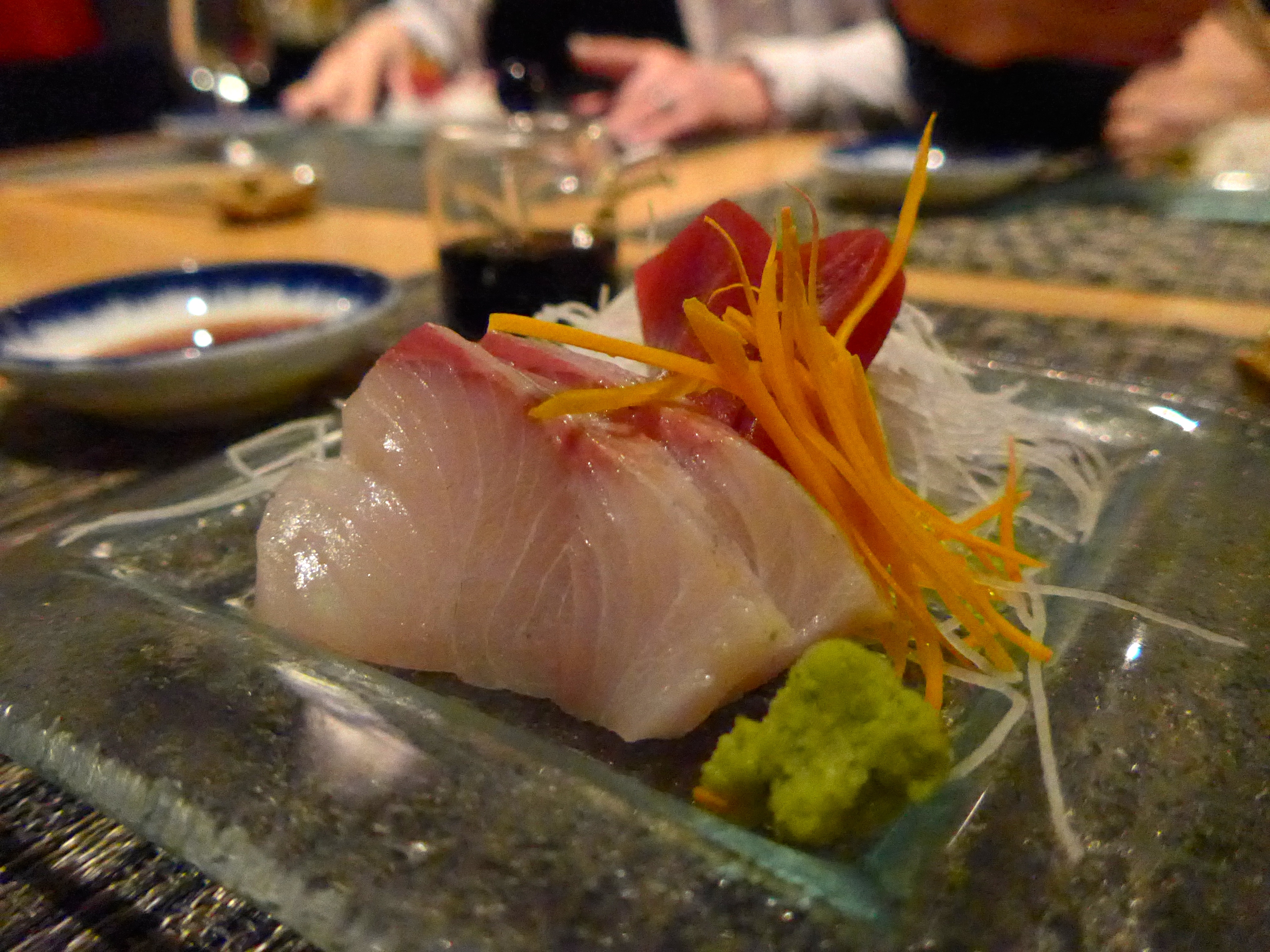 Fine cuts of yellowtail and tuna arrived with another enviable object. How cute is that soy sauce pot?