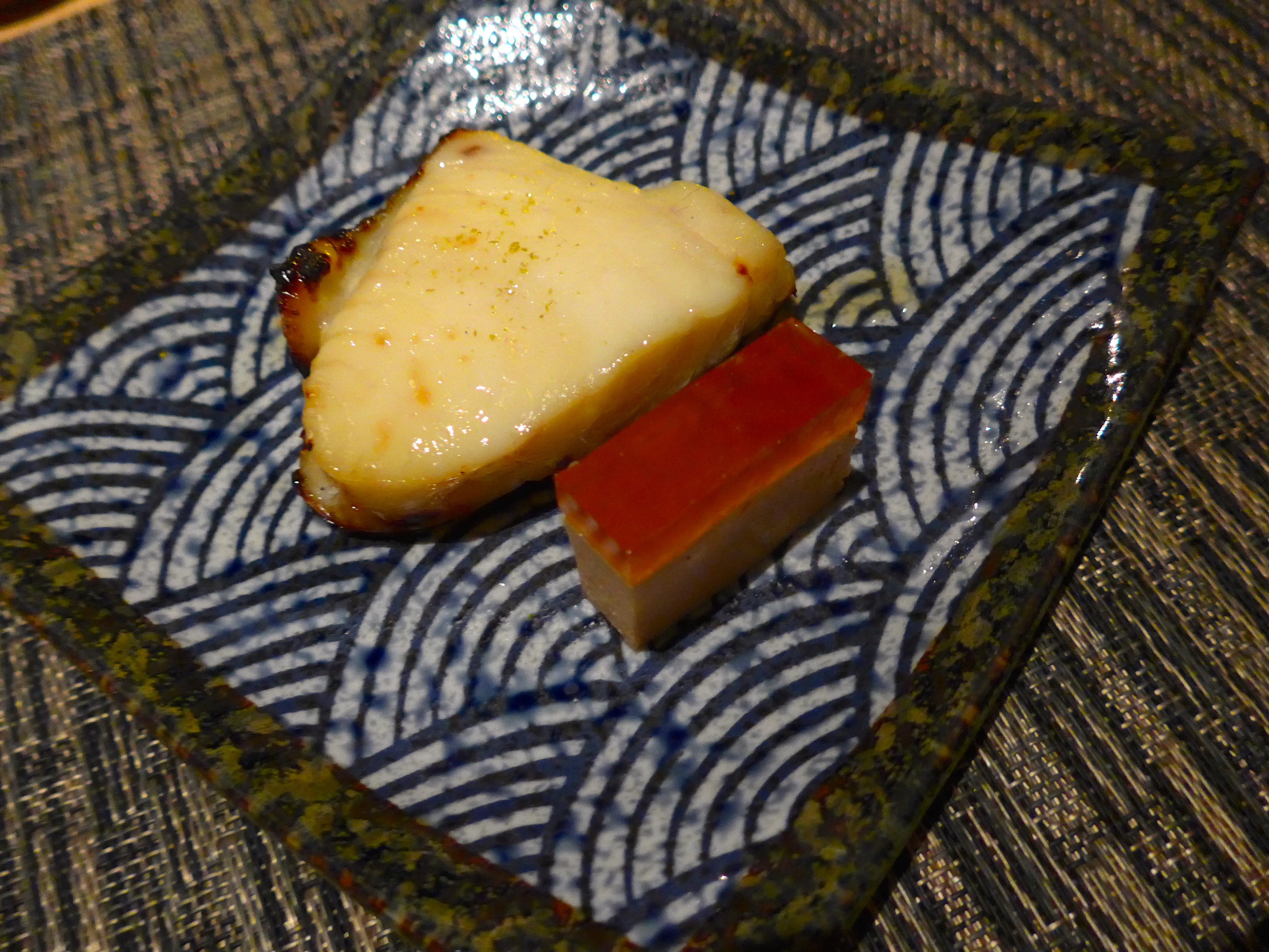 A generous portion of sweetened miso marinated louvar fish was accompanied by a delicate monkfish liver fish mousse. I really enjoyed this, it was sweet and meaty, and just look at that plate!