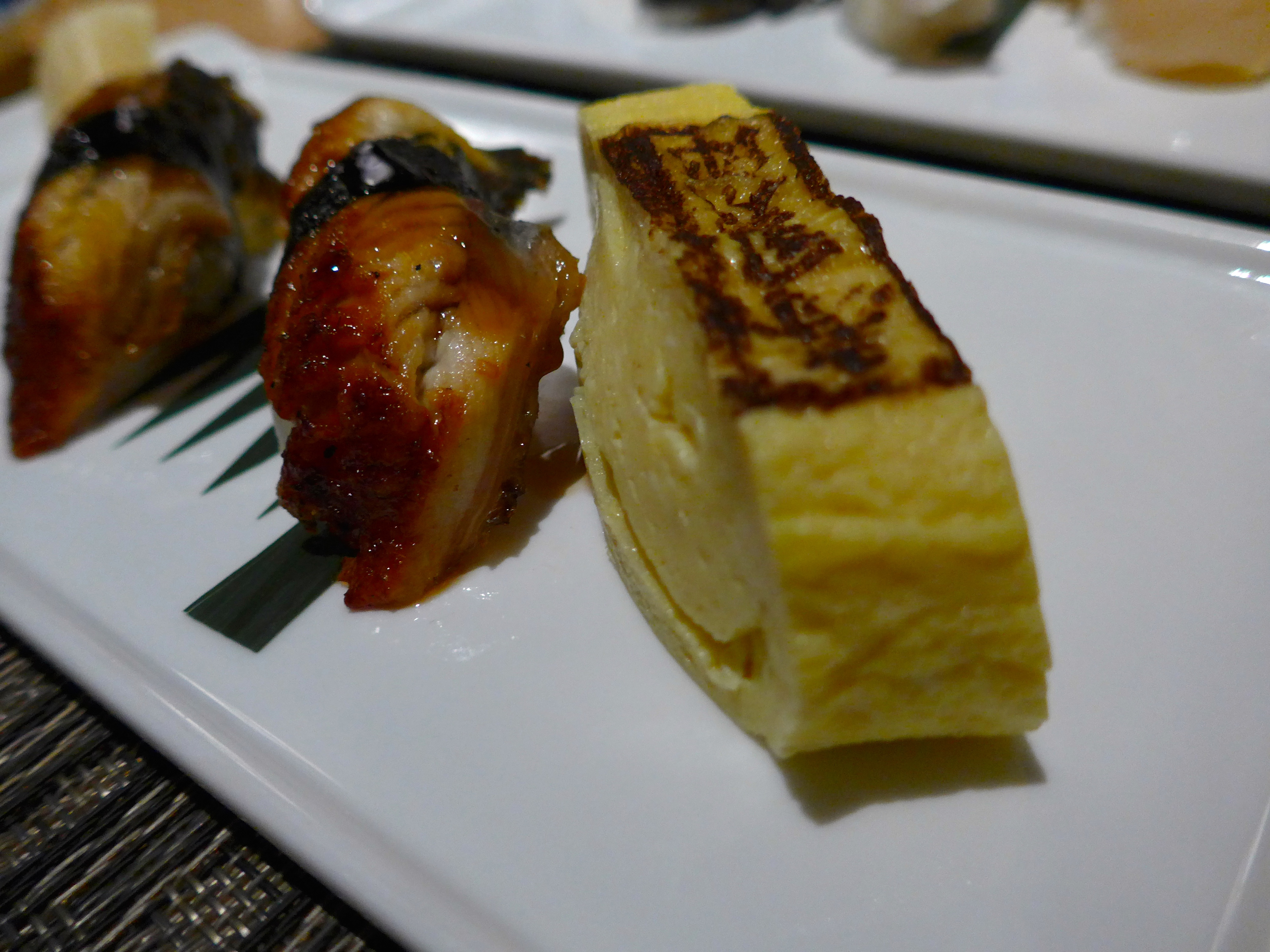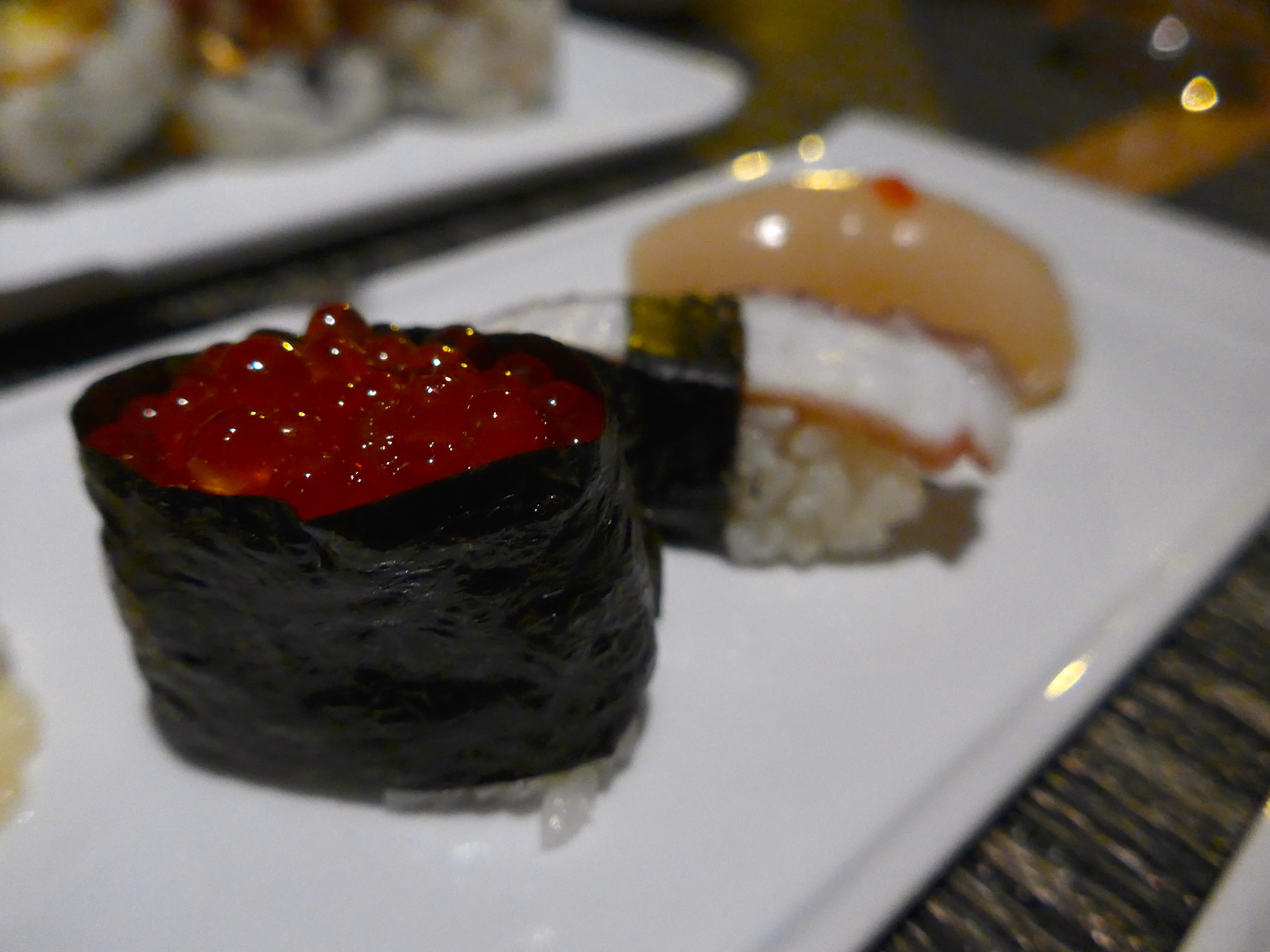 Next to arrive was a selection of nigiri, including unagi, tamago yaki, raw scallop, octopus and salmon roe.