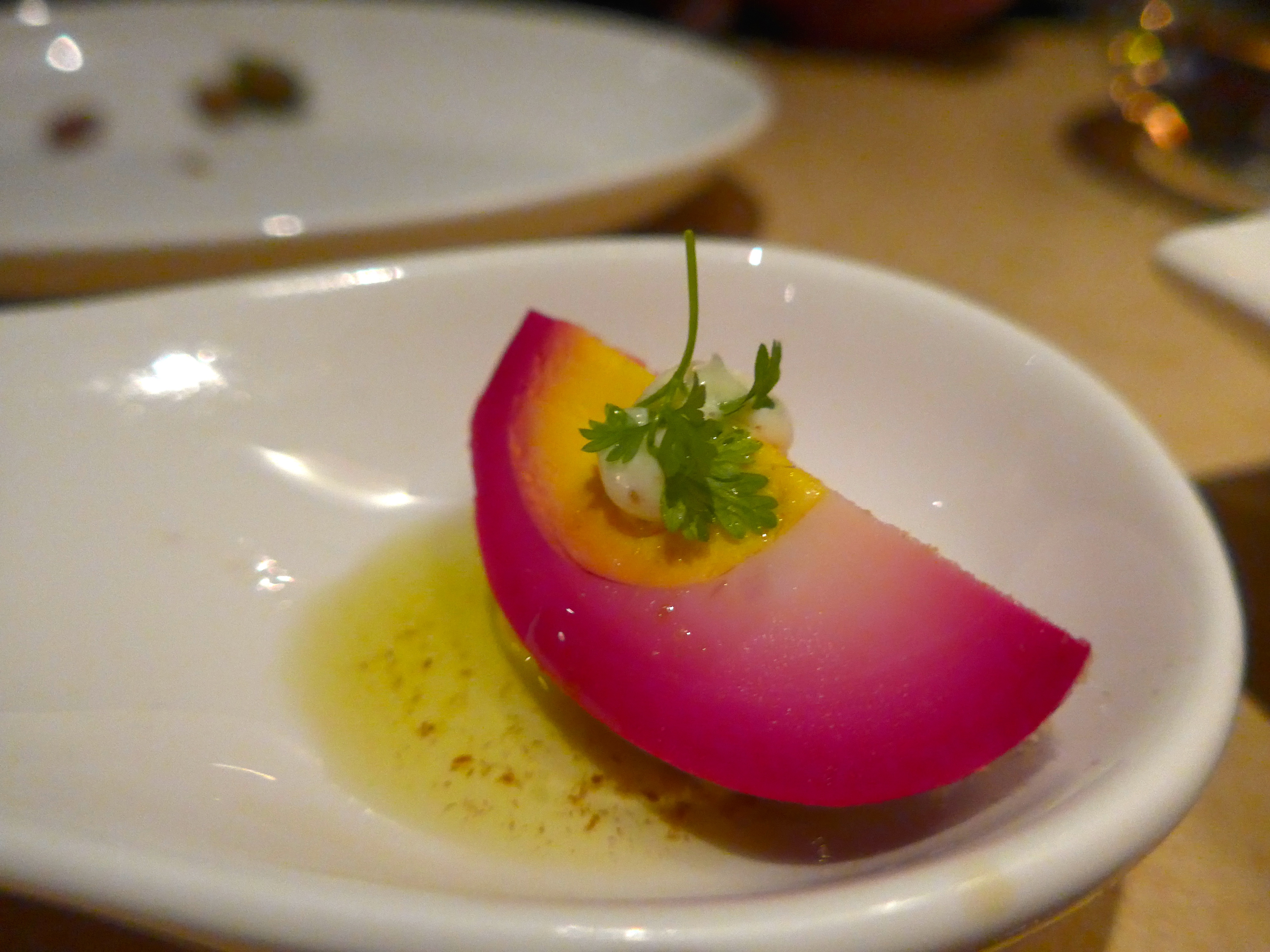 The other garden dish was a warm beet composition with sesame feta, roasted treviso and pistachio.