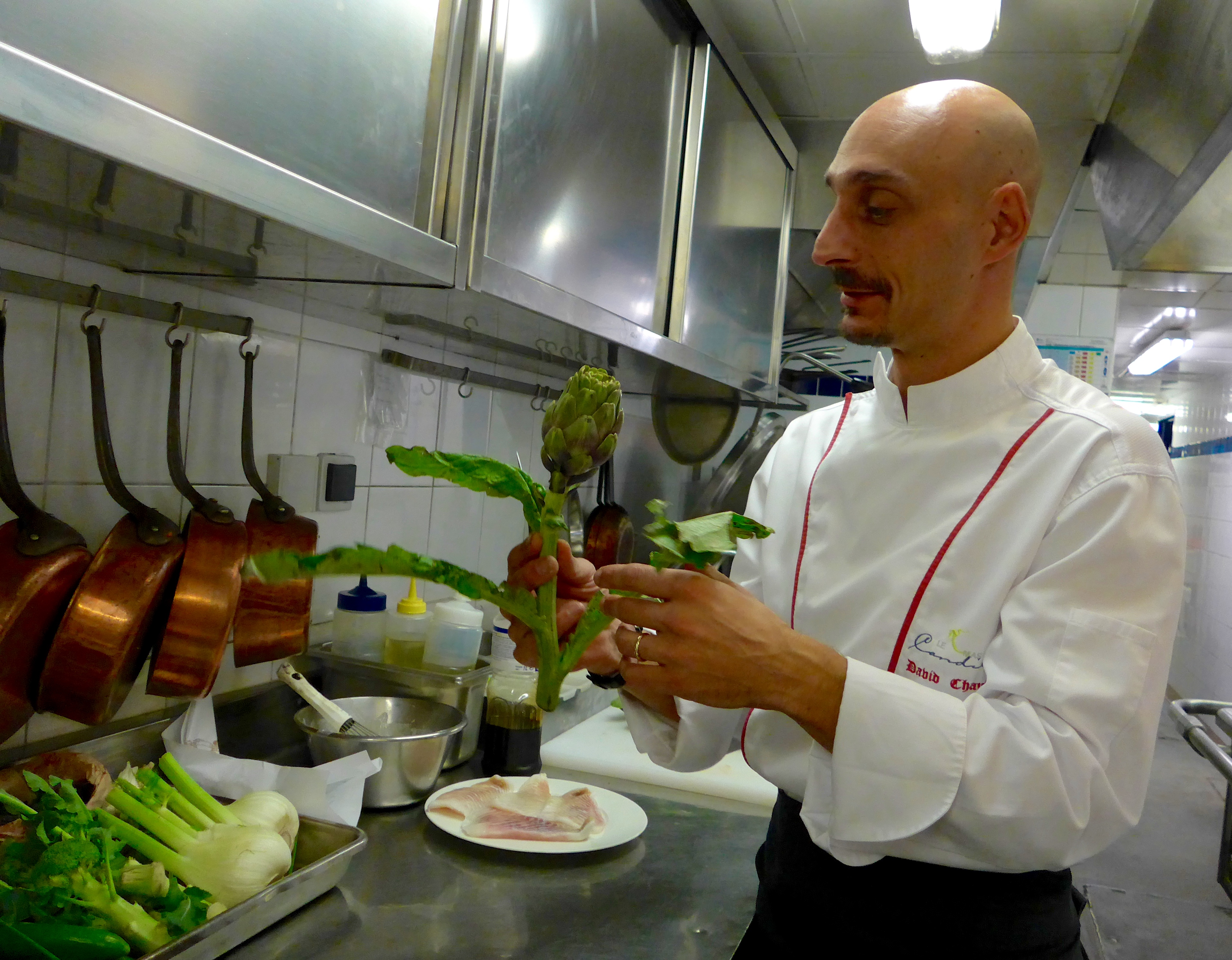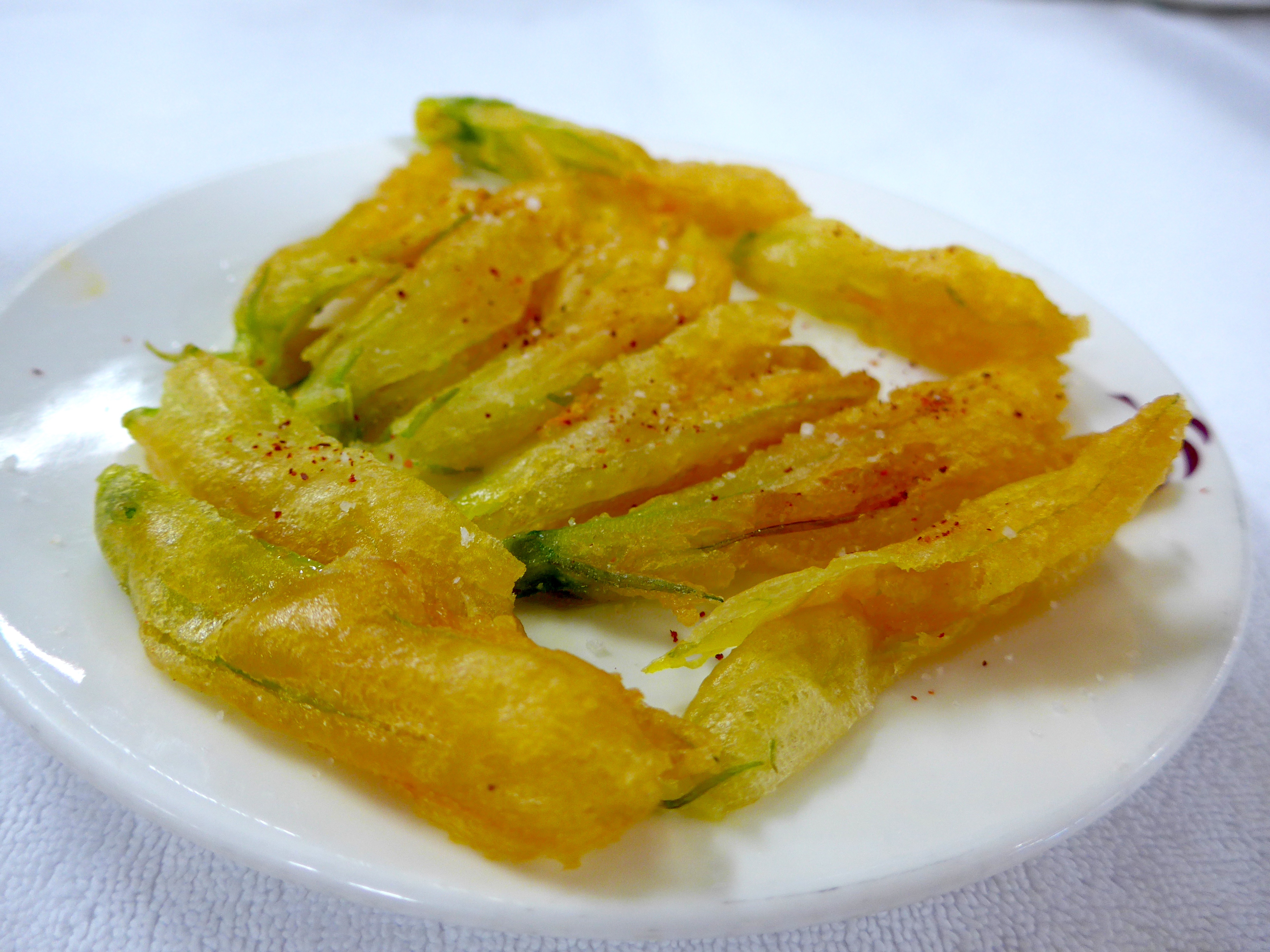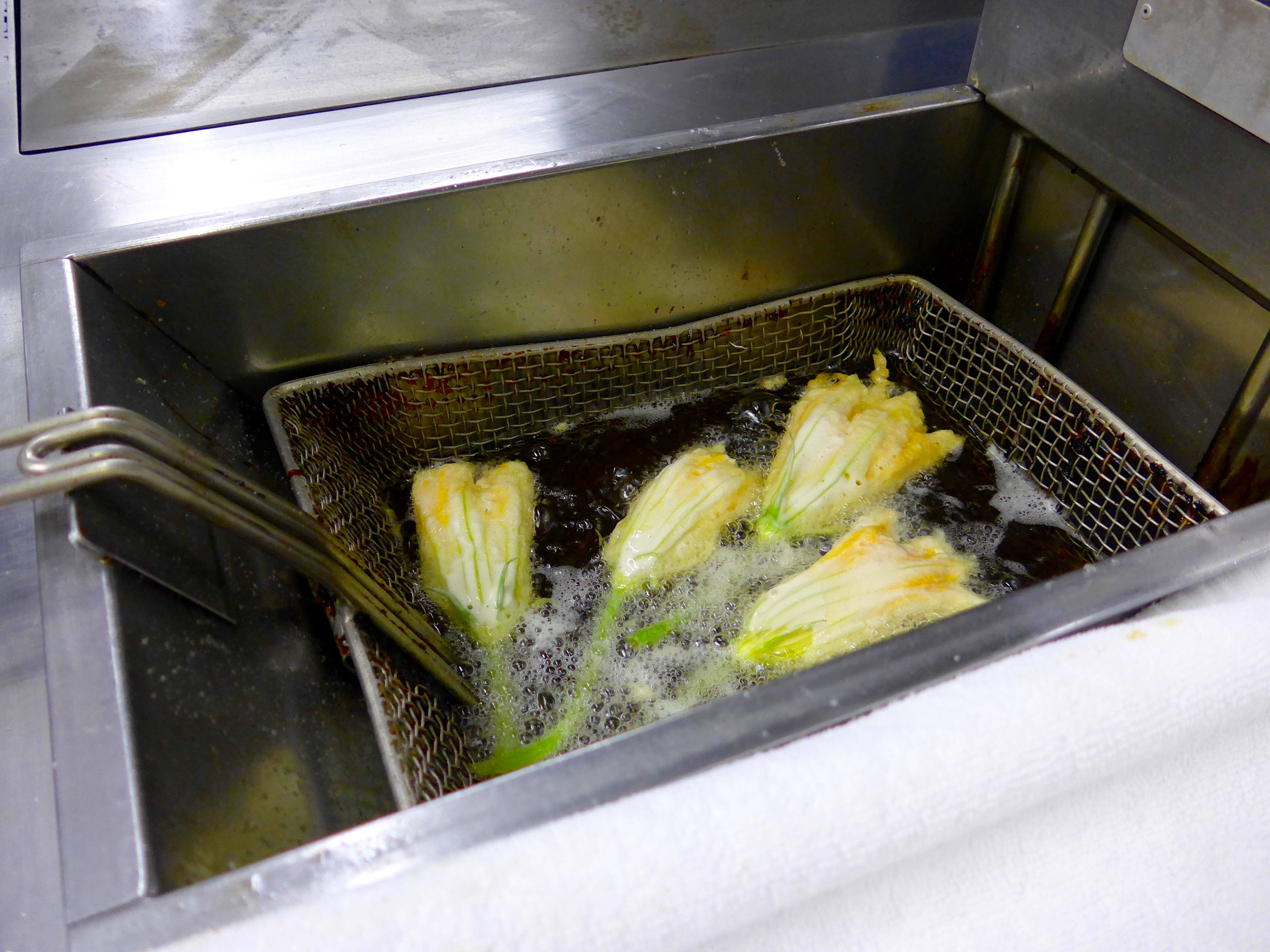 Here, Chef David began by dipping courgette flowers in a light batter and frying them, before sprinkling with sea salt and chilli.